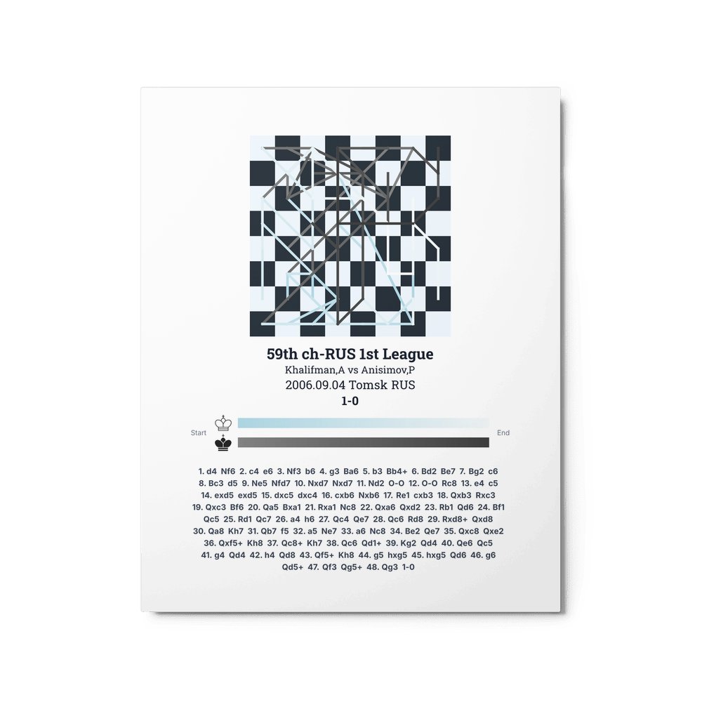 Museum-quality poster on thick, durable matte paper. A sharp, clean look for any chess visualisation.