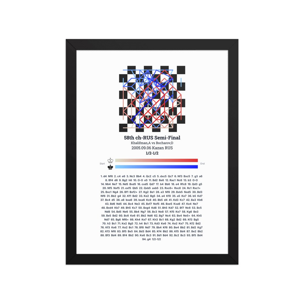 Museum-quality poster on thick, durable matte paper. A sharp, clean look for any chess visualisation.