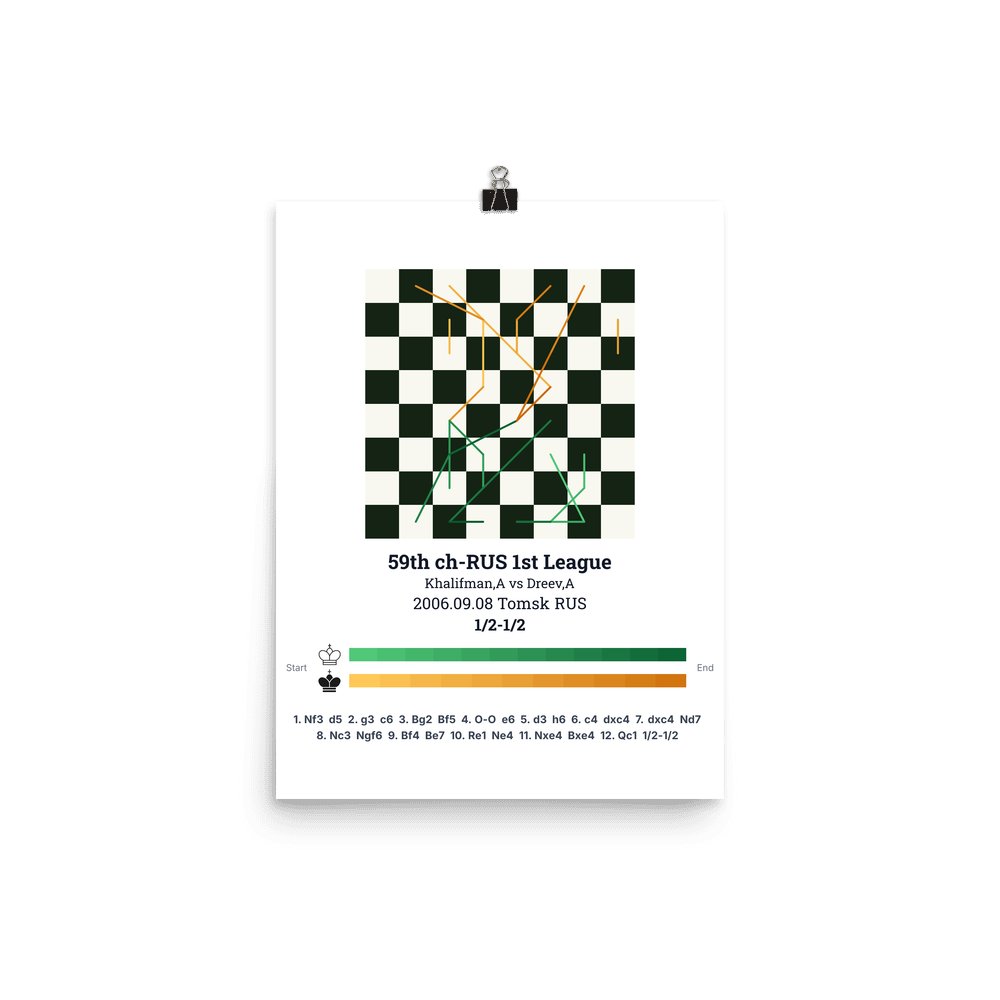 Museum-quality poster on thick, durable matte paper. A sharp, clean look for any chess visualisation.