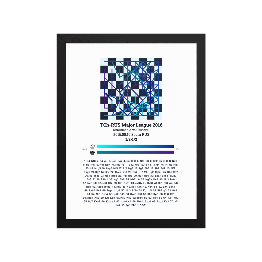 Museum-quality poster on thick, durable matte paper. A sharp, clean look for any chess visualisation.