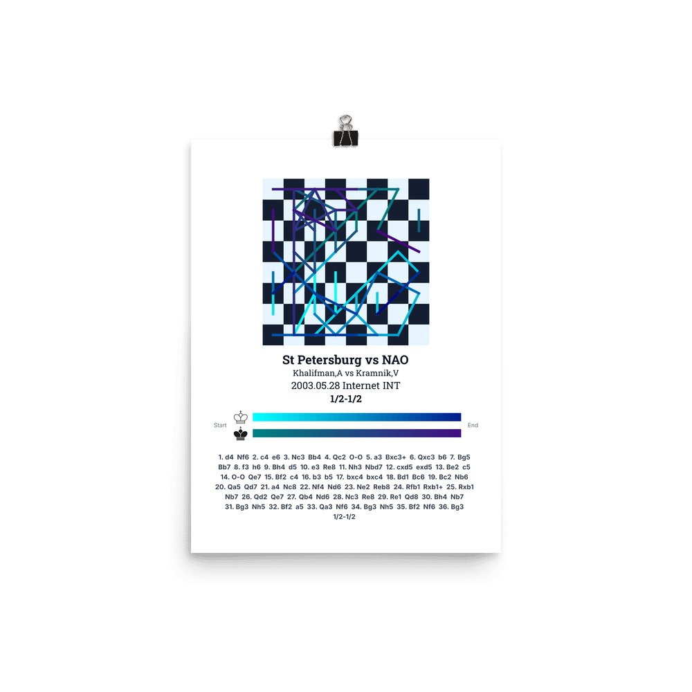 Museum-quality poster on thick, durable matte paper. A sharp, clean look for any chess visualisation.