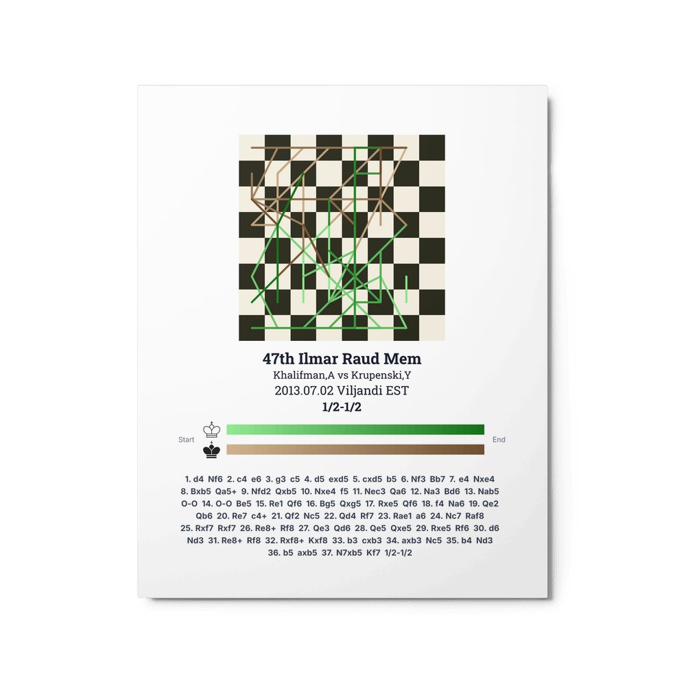 Museum-quality poster on thick, durable matte paper. A sharp, clean look for any chess visualisation.