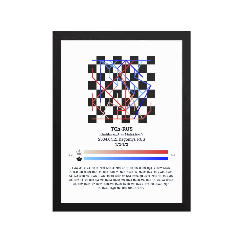 Museum-quality poster on thick, durable matte paper. A sharp, clean look for any chess visualisation.