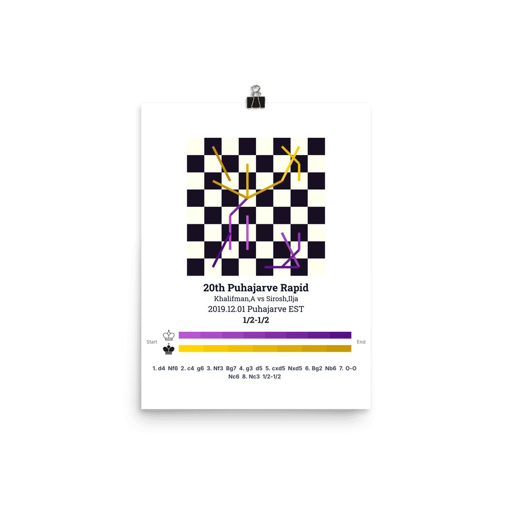 Museum-quality poster on thick, durable matte paper. A sharp, clean look for any chess visualisation.