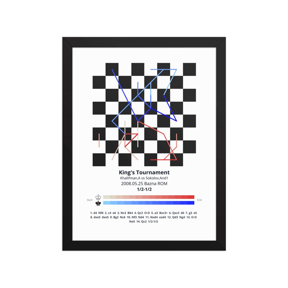Museum-quality poster on thick, durable matte paper. A sharp, clean look for any chess visualisation.