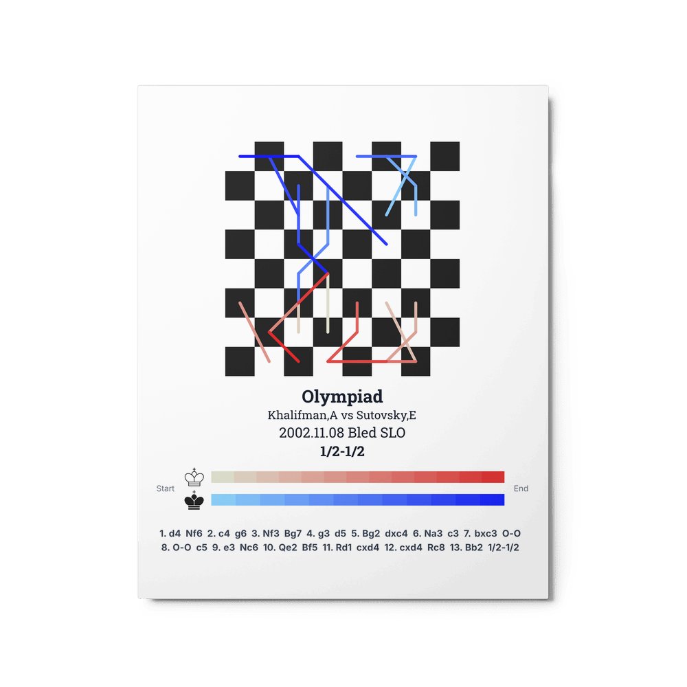 Museum-quality poster on thick, durable matte paper. A sharp, clean look for any chess visualisation.