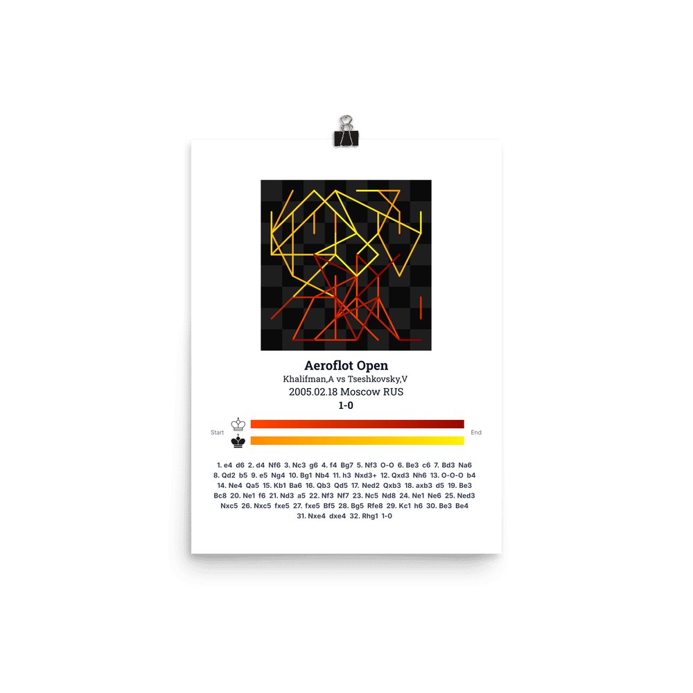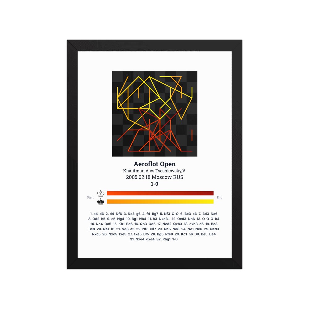 Museum-quality poster on thick, durable matte paper. A sharp, clean look for any chess visualisation.