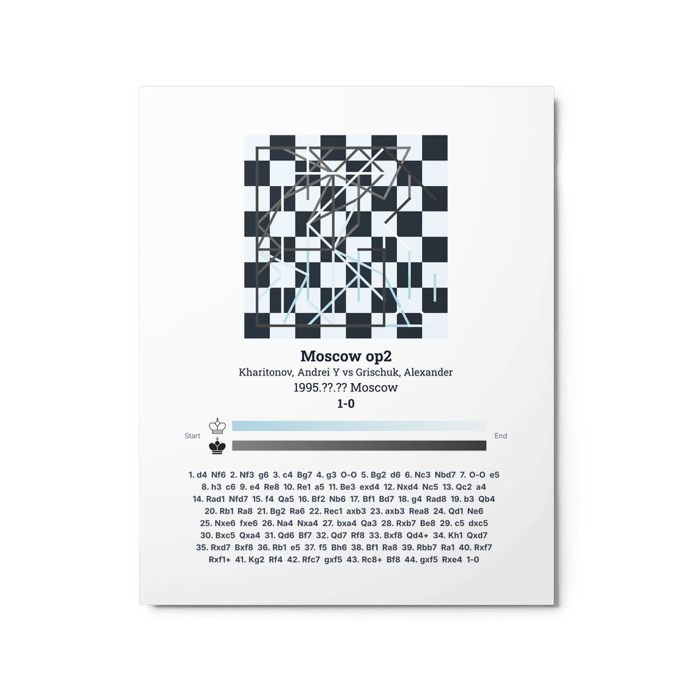 Museum-quality poster on thick, durable matte paper. A sharp, clean look for any chess visualisation.
