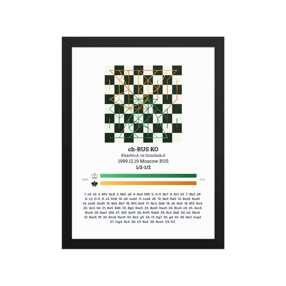 Museum-quality poster on thick, durable matte paper. A sharp, clean look for any chess visualisation.