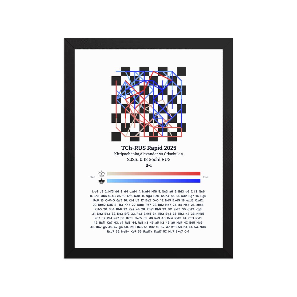 Museum-quality poster on thick, durable matte paper. A sharp, clean look for any chess visualisation.