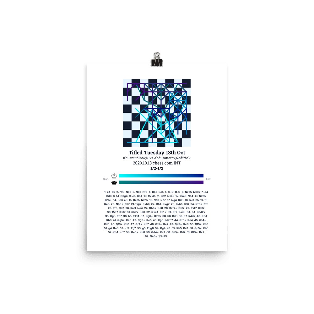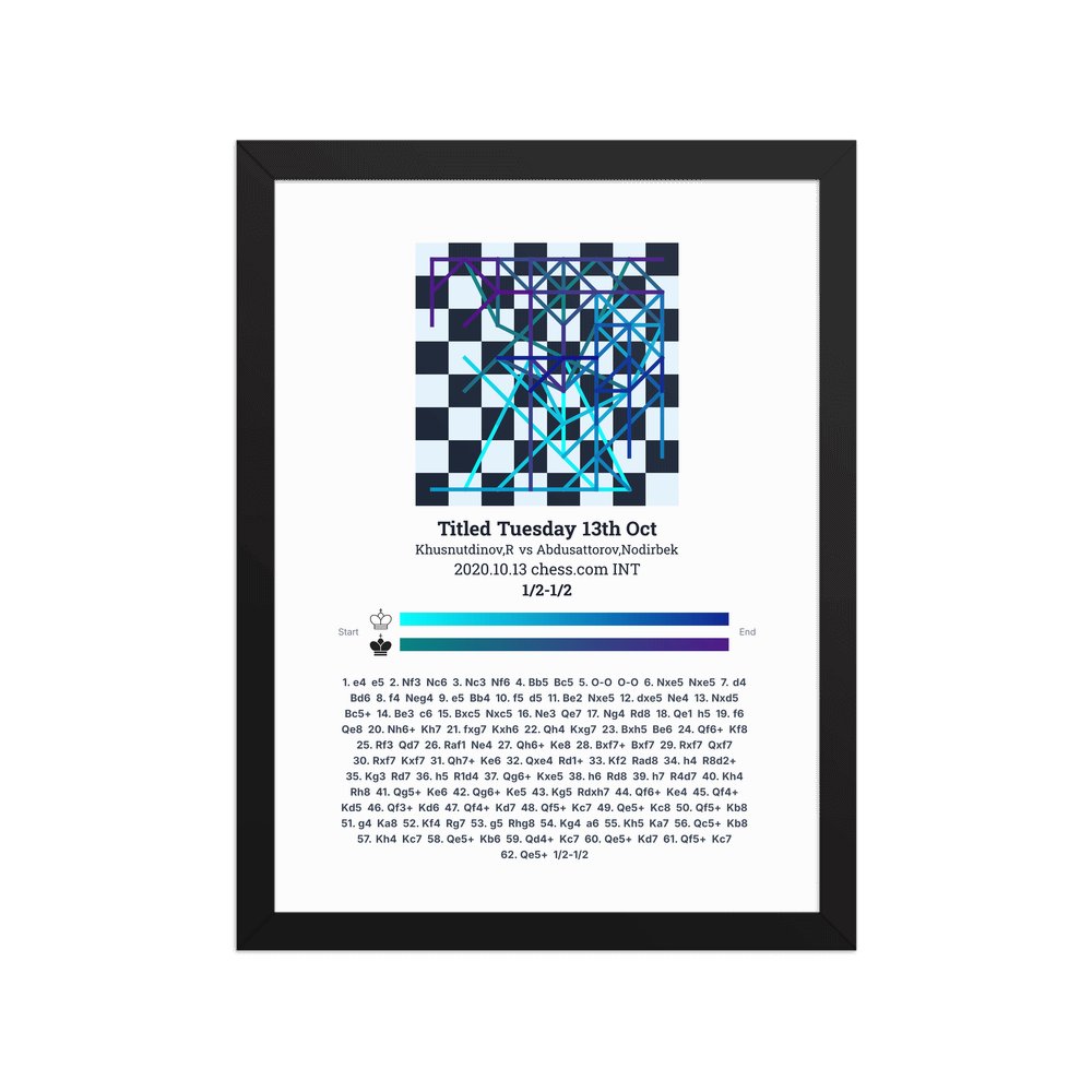 Museum-quality poster on thick, durable matte paper. A sharp, clean look for any chess visualisation.