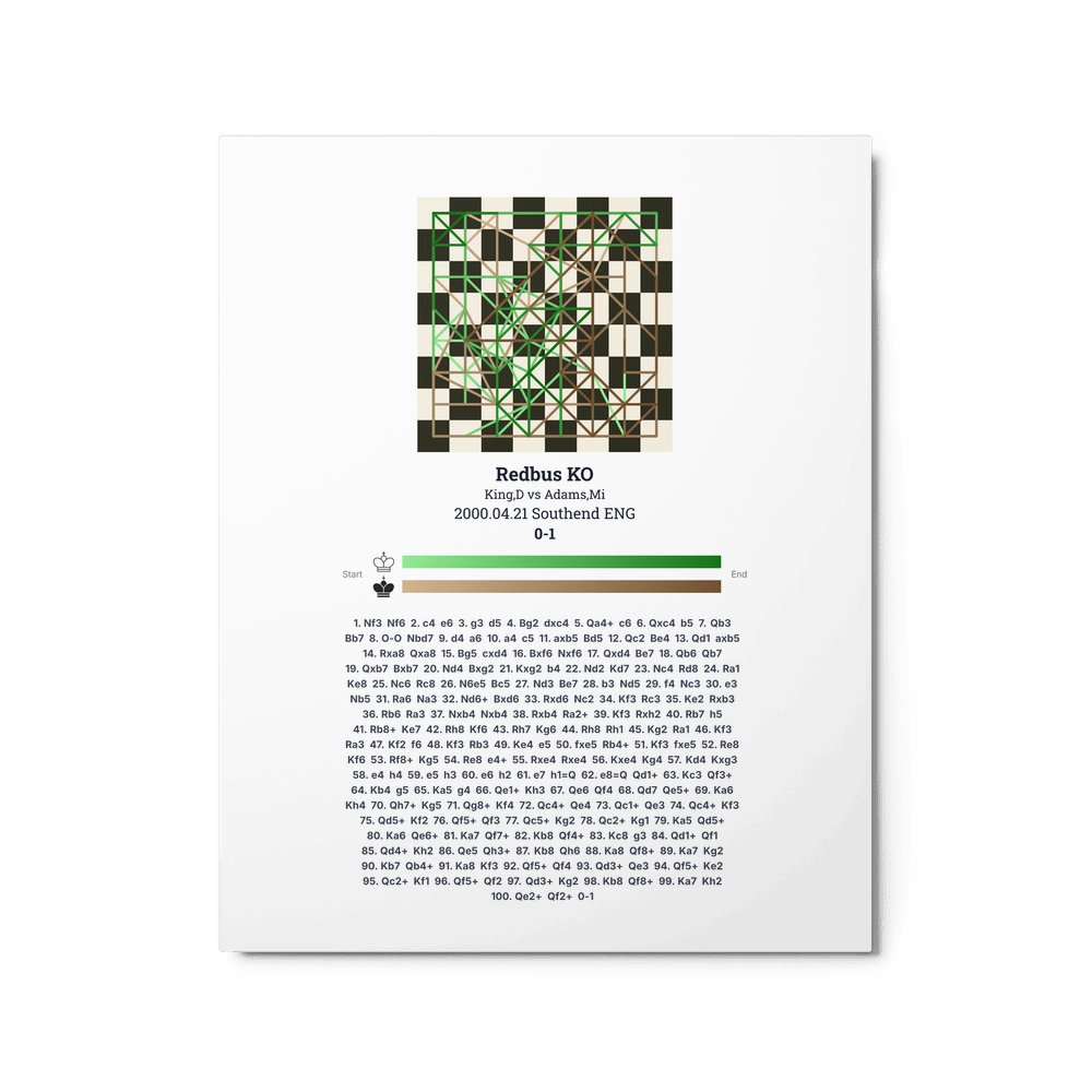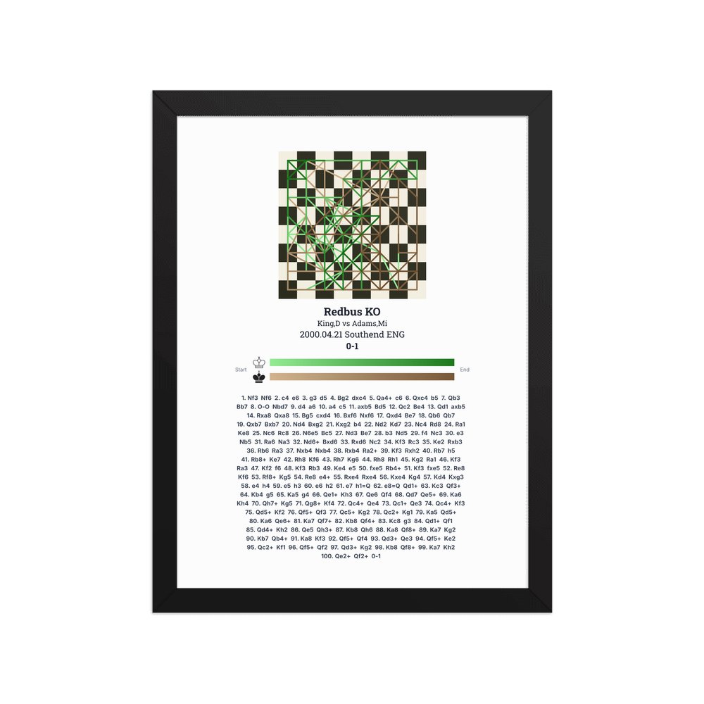 Museum-quality poster on thick, durable matte paper. A sharp, clean look for any chess visualisation.