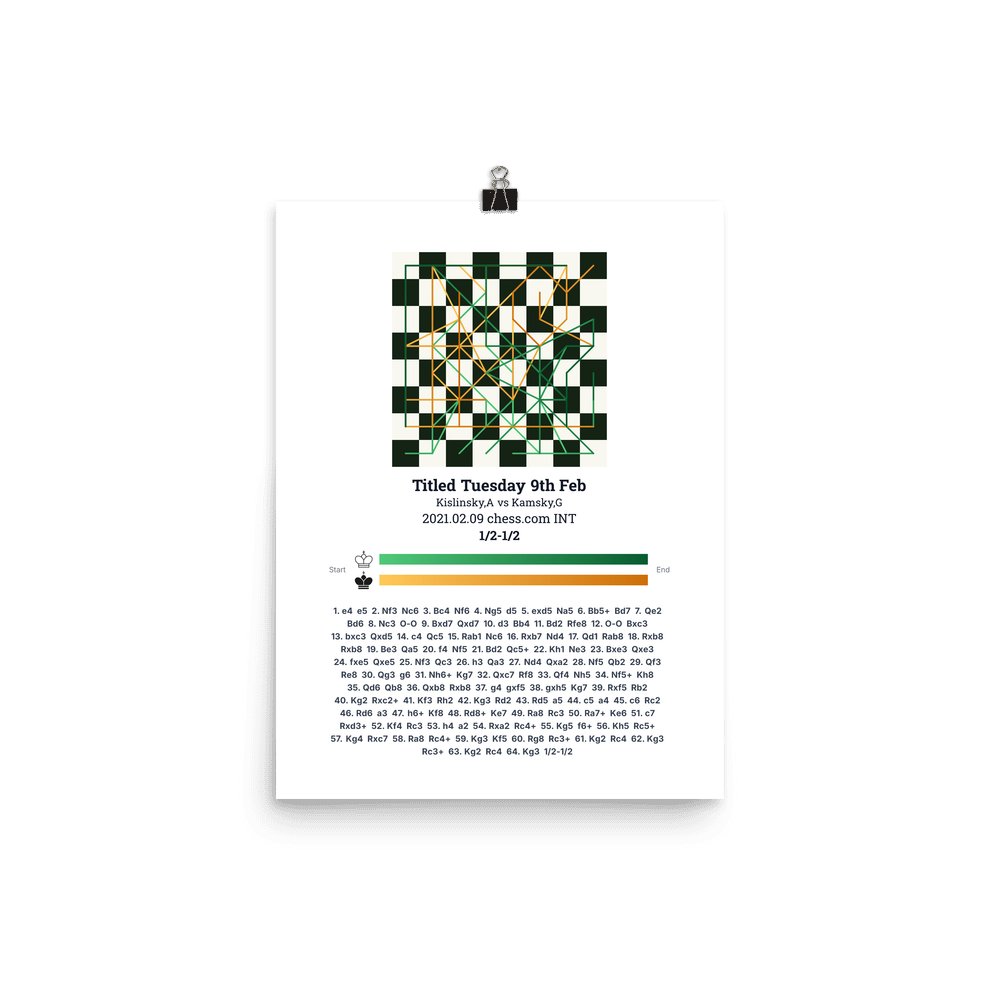 Museum-quality poster on thick, durable matte paper. A sharp, clean look for any chess visualisation.