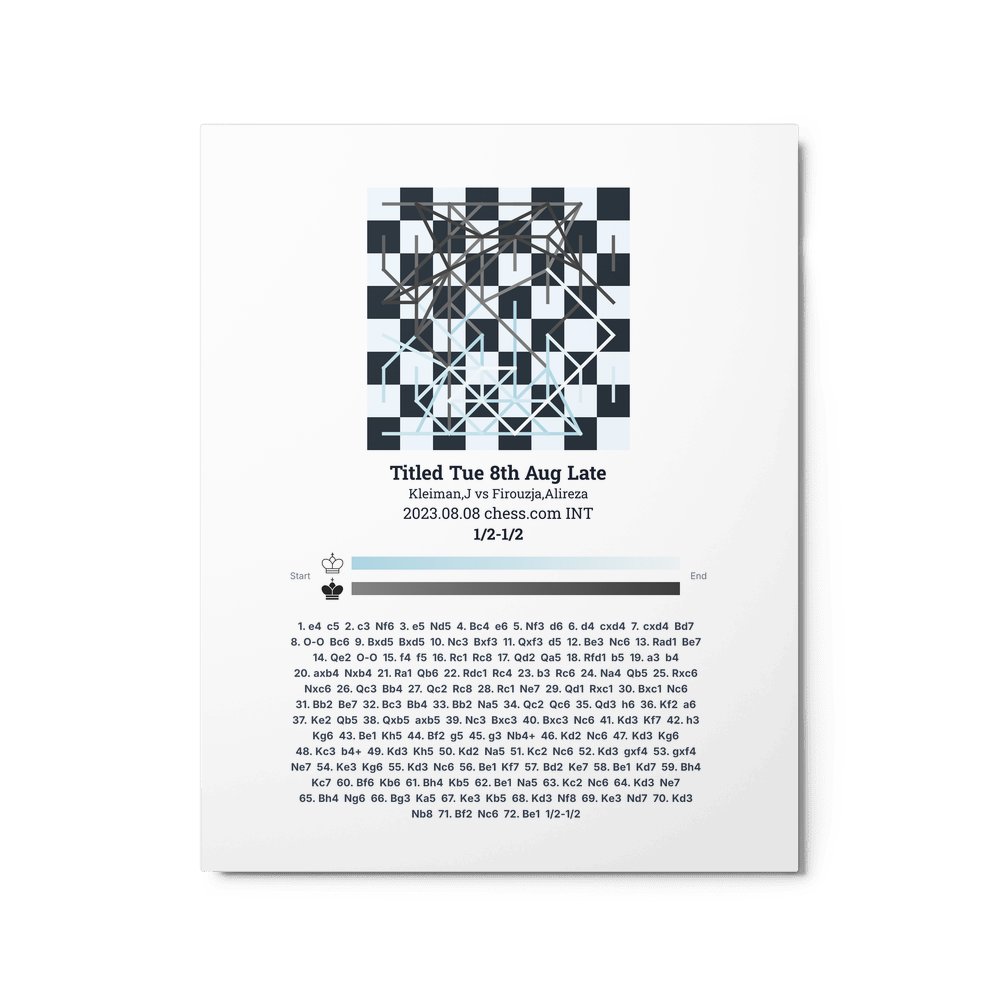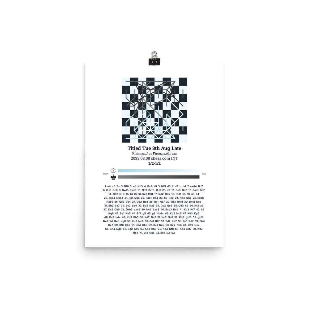 Museum-quality poster on thick, durable matte paper. A sharp, clean look for any chess visualisation.