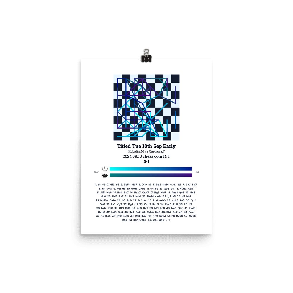 Museum-quality poster on thick, durable matte paper. A sharp, clean look for any chess visualisation.