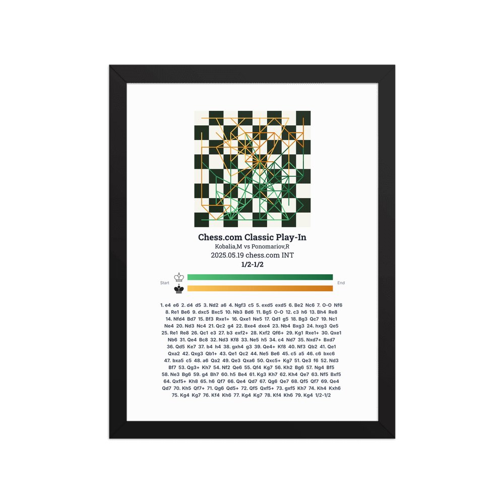Museum-quality poster on thick, durable matte paper. A sharp, clean look for any chess visualisation.