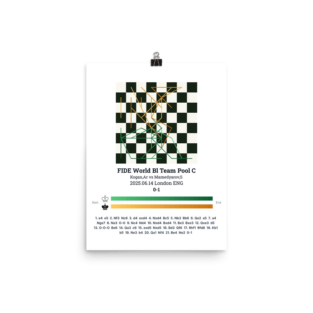 Museum-quality poster on thick, durable matte paper. A sharp, clean look for any chess visualisation.