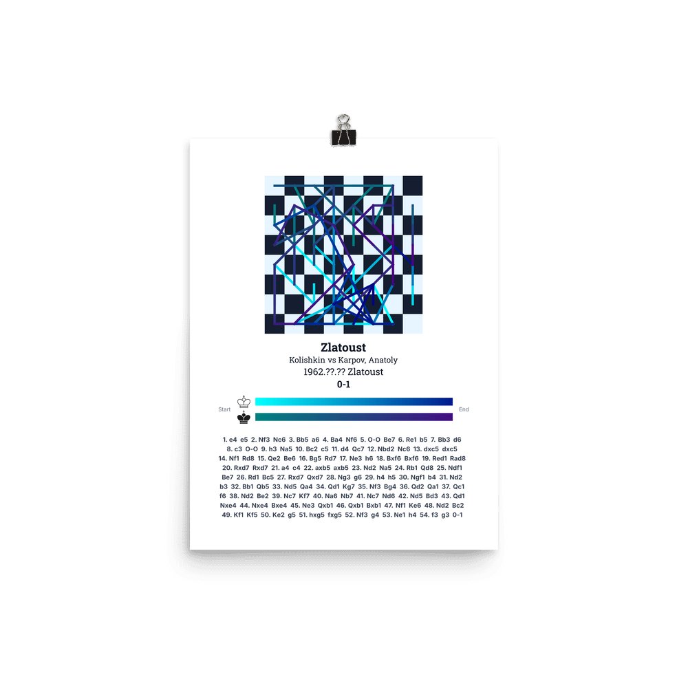 Museum-quality poster on thick, durable matte paper. A sharp, clean look for any chess visualisation.