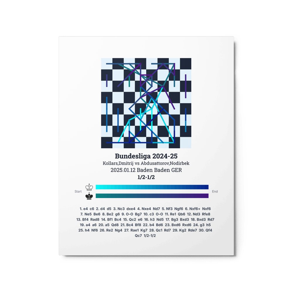 Museum-quality poster on thick, durable matte paper. A sharp, clean look for any chess visualisation.