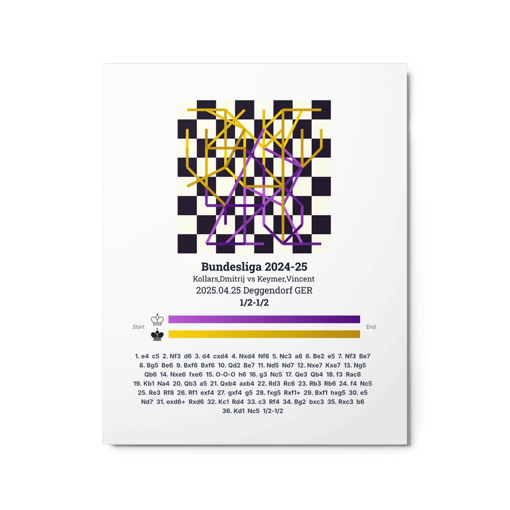 Museum-quality poster on thick, durable matte paper. A sharp, clean look for any chess visualisation.