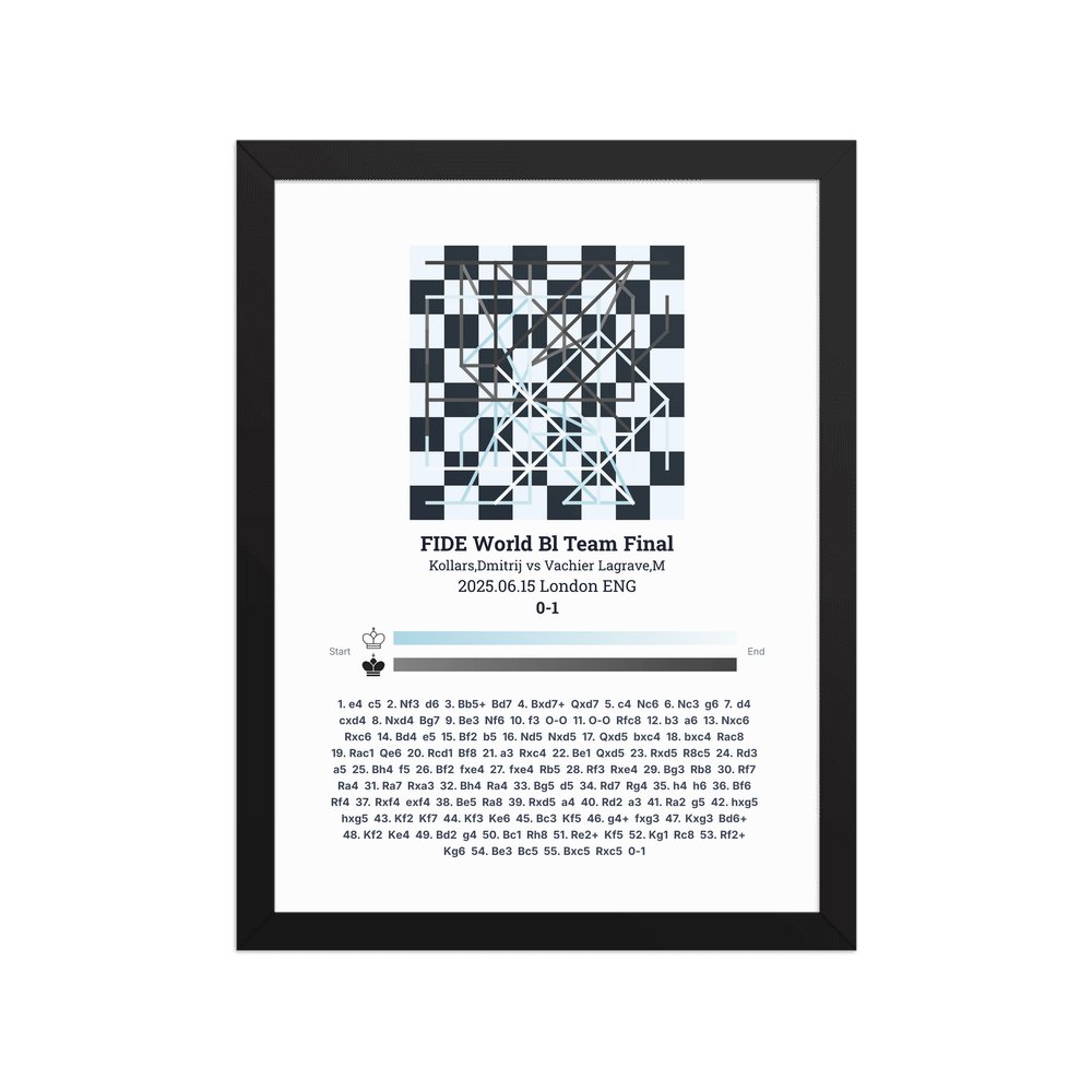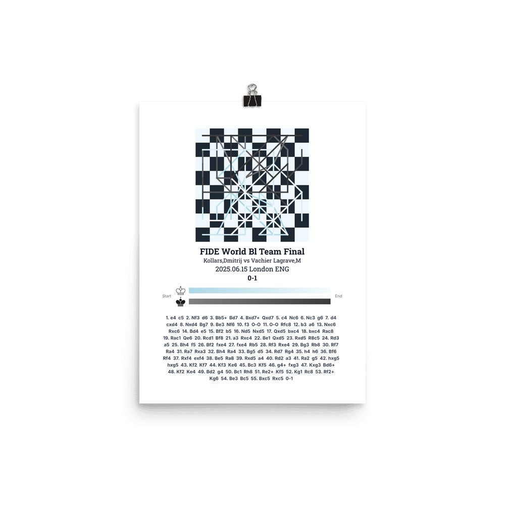 Museum-quality poster on thick, durable matte paper. A sharp, clean look for any chess visualisation.