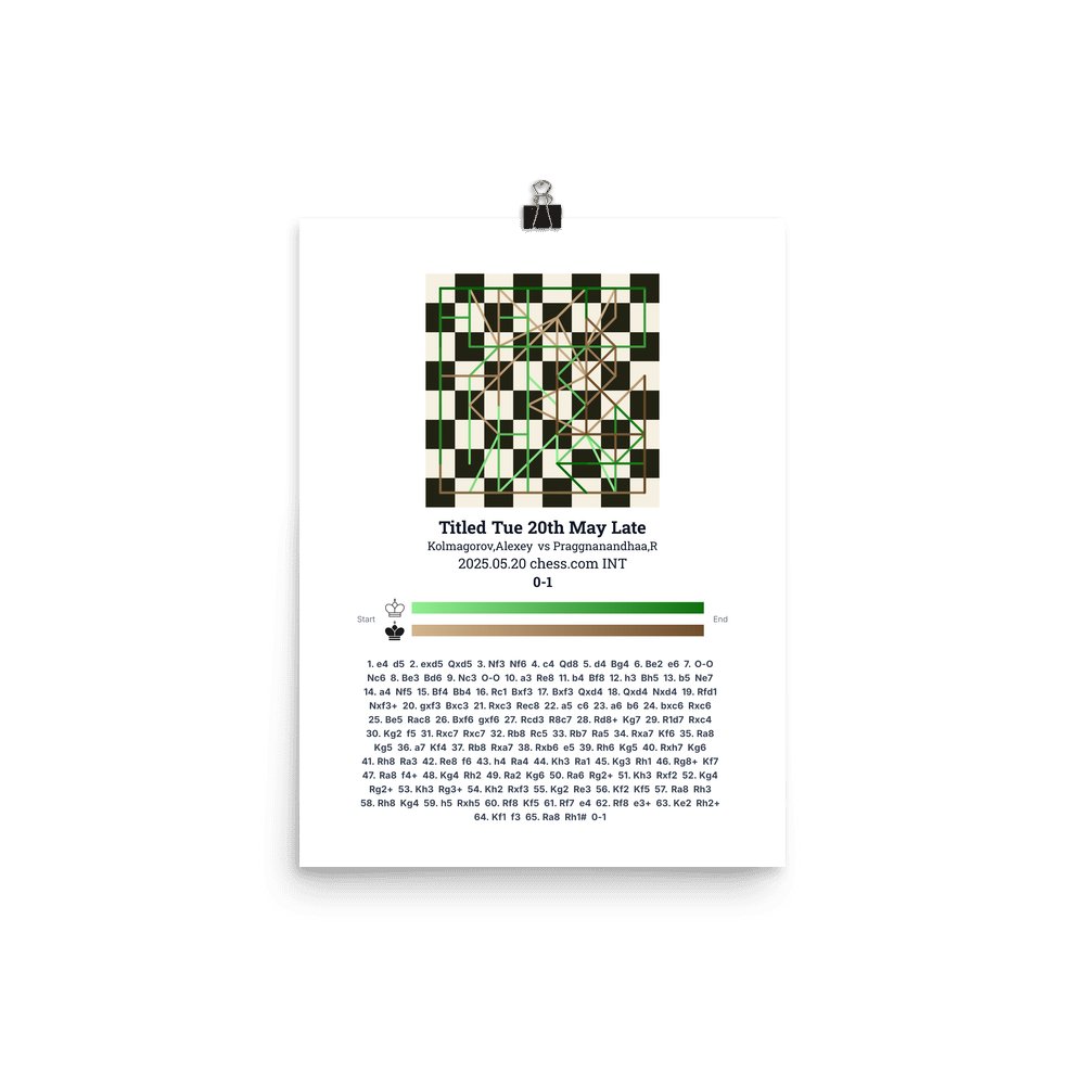 Museum-quality poster on thick, durable matte paper. A sharp, clean look for any chess visualisation.