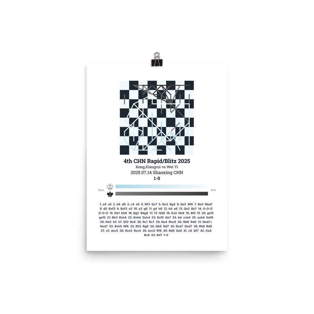 Museum-quality poster on thick, durable matte paper. A sharp, clean look for any chess visualisation.