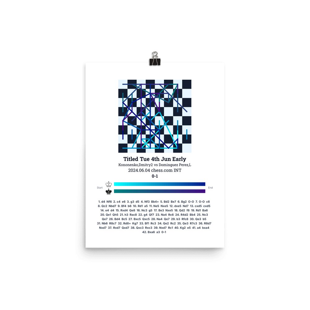 Museum-quality poster on thick, durable matte paper. A sharp, clean look for any chess visualisation.