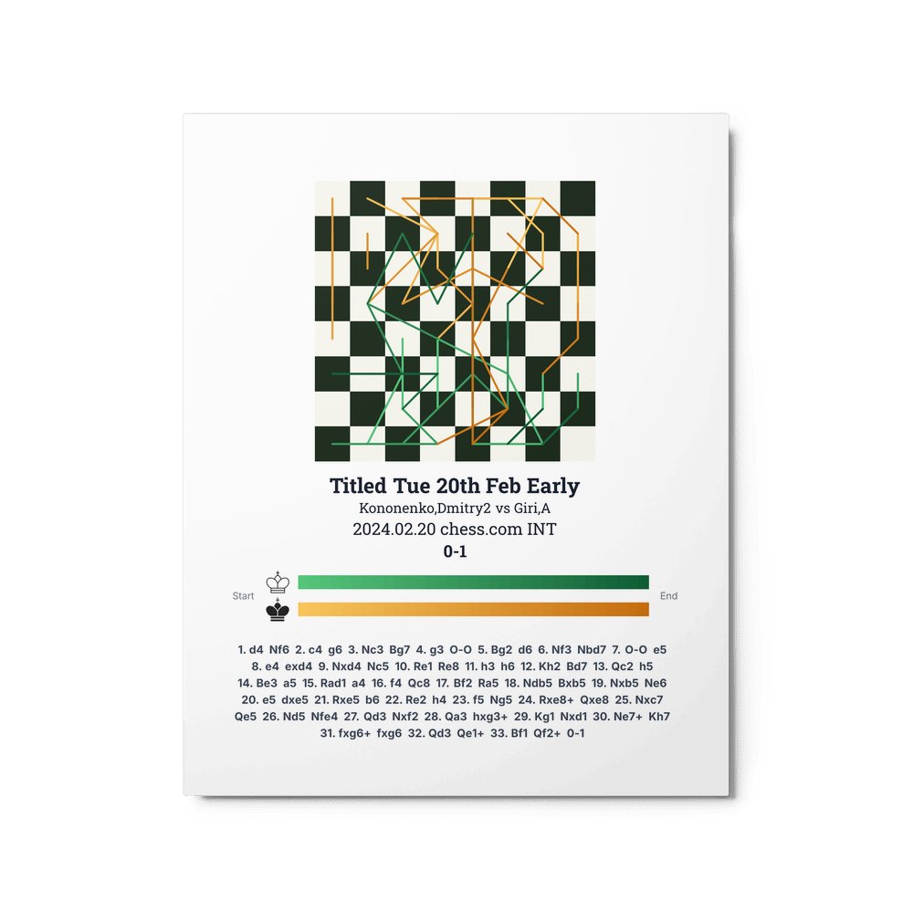 Museum-quality poster on thick, durable matte paper. A sharp, clean look for any chess visualisation.