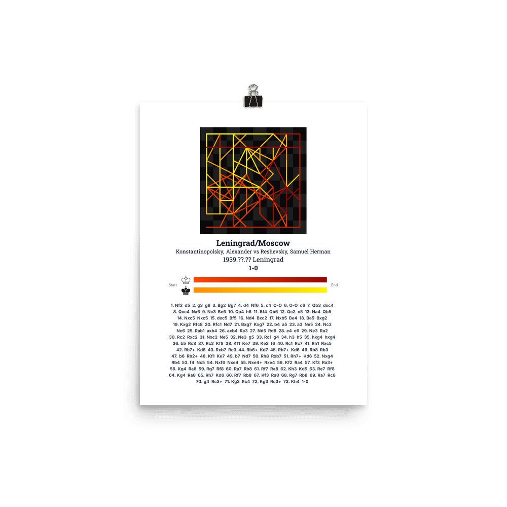 Museum-quality poster on thick, durable matte paper. A sharp, clean look for any chess visualisation.