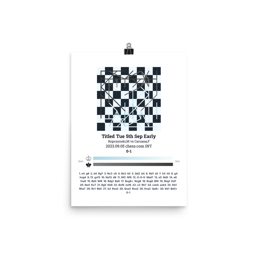 Museum-quality poster on thick, durable matte paper. A sharp, clean look for any chess visualisation.