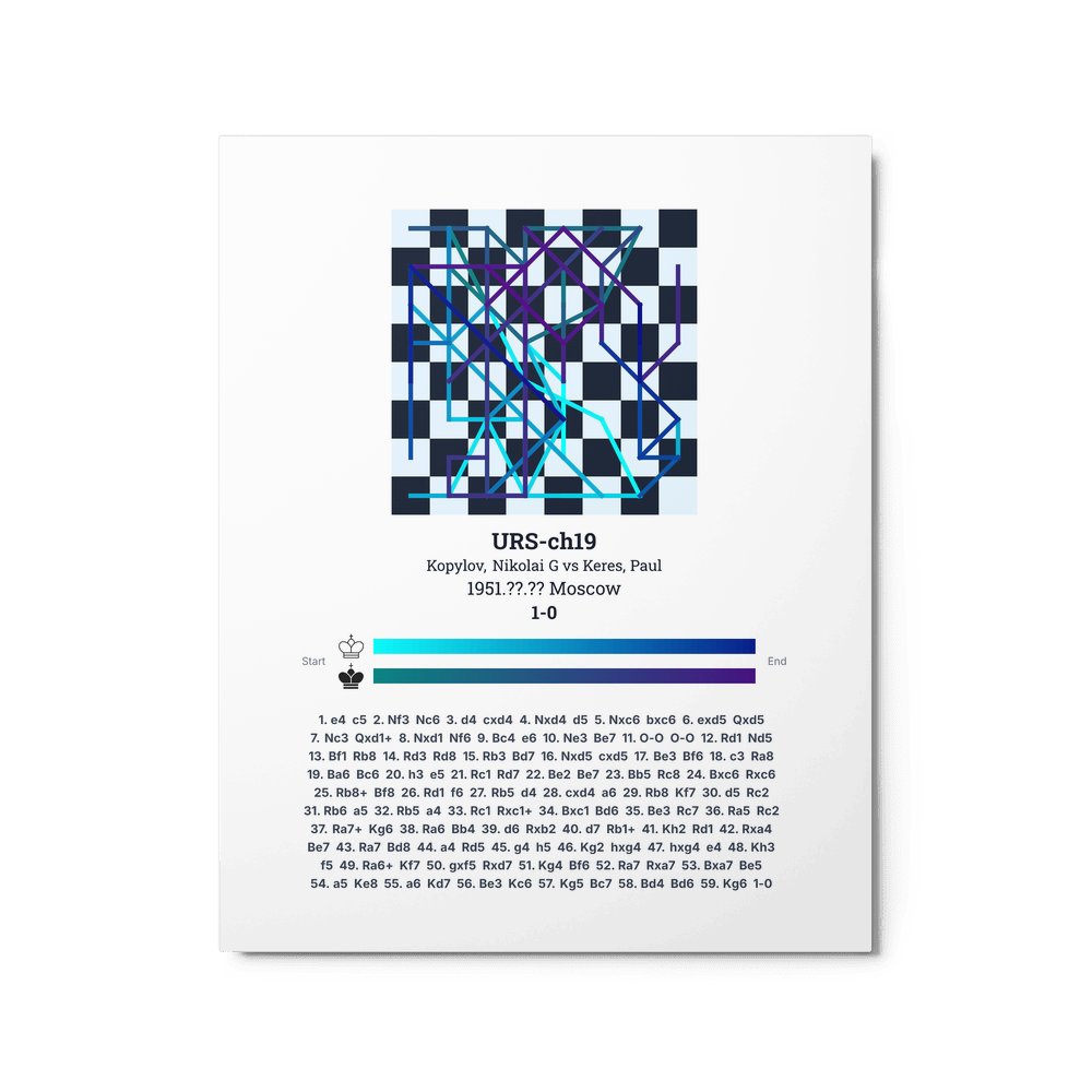 Museum-quality poster on thick, durable matte paper. A sharp, clean look for any chess visualisation.