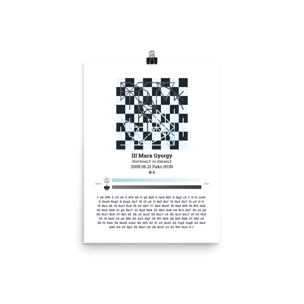 Museum-quality poster on thick, durable matte paper. A sharp, clean look for any chess visualisation.