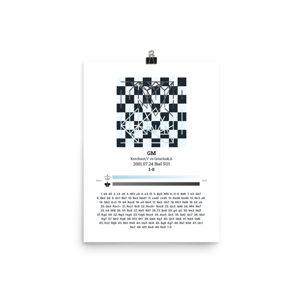 Museum-quality poster on thick, durable matte paper. A sharp, clean look for any chess visualisation.