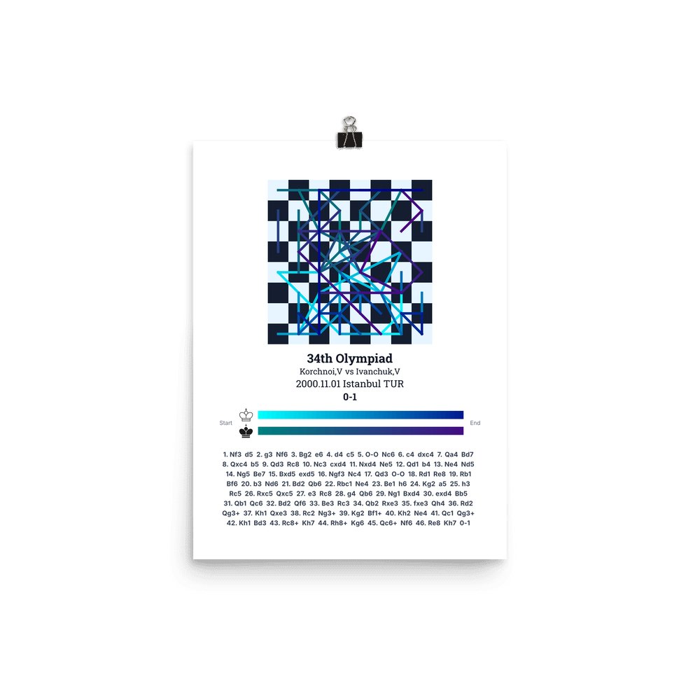 Museum-quality poster on thick, durable matte paper. A sharp, clean look for any chess visualisation.