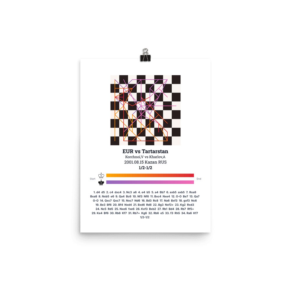 Museum-quality poster on thick, durable matte paper. A sharp, clean look for any chess visualisation.