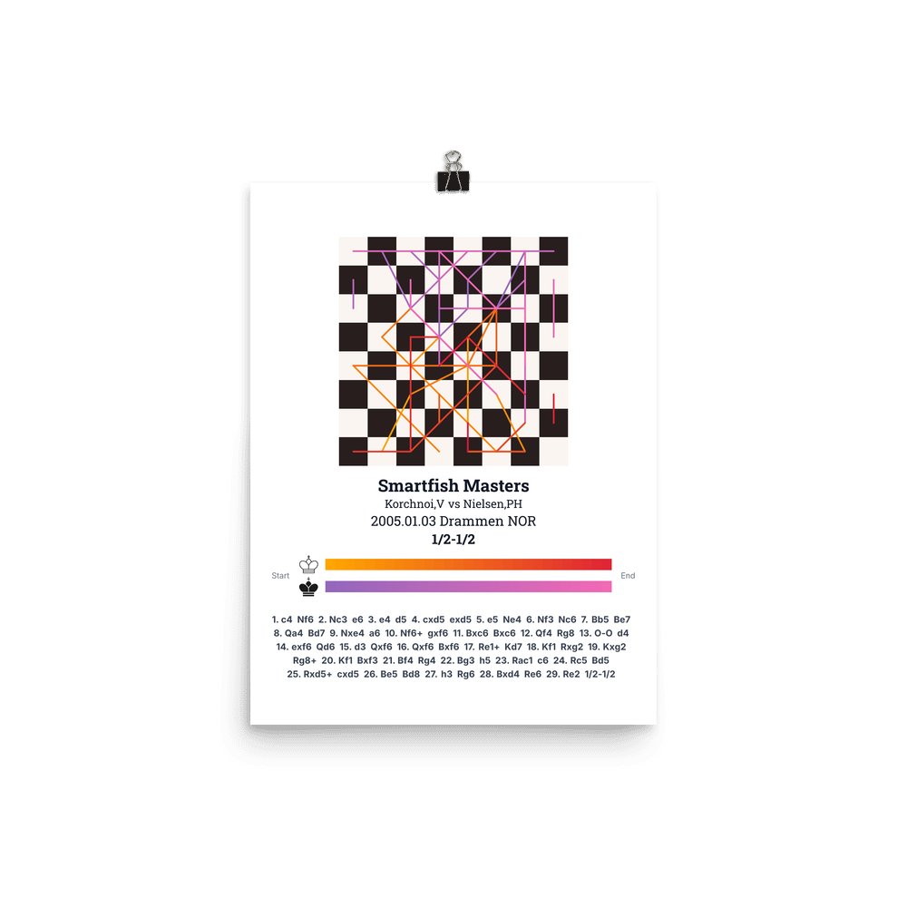 Museum-quality poster on thick, durable matte paper. A sharp, clean look for any chess visualisation.