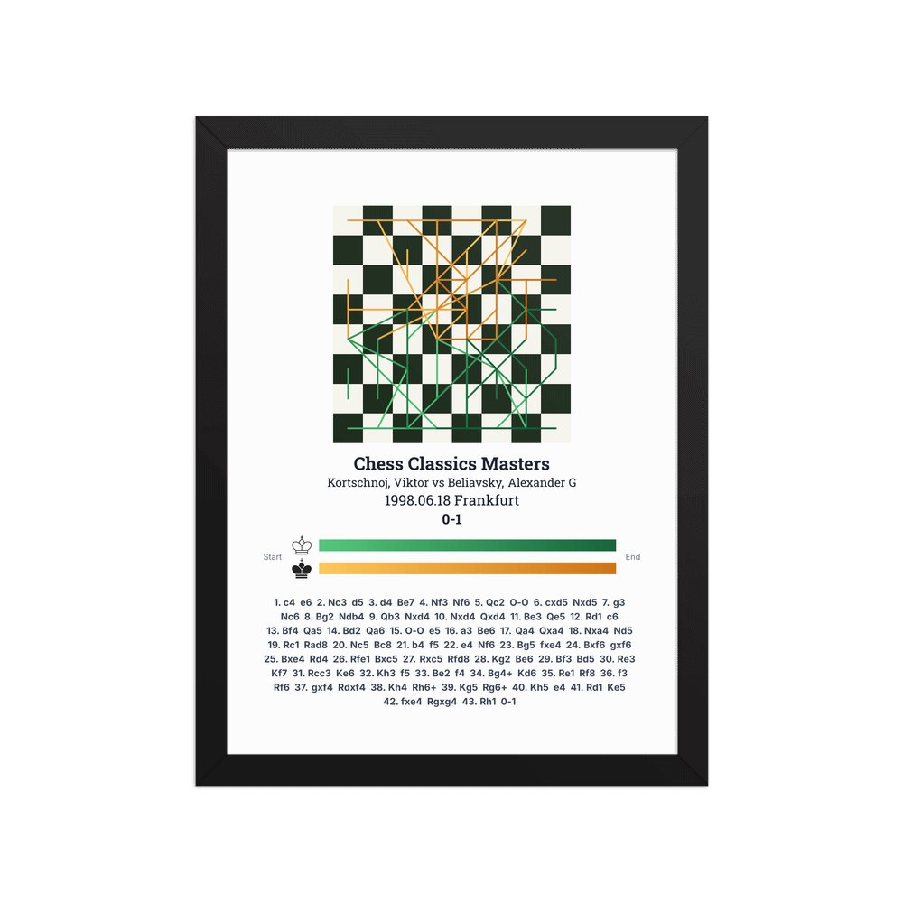 Museum-quality poster on thick, durable matte paper. A sharp, clean look for any chess visualisation.
