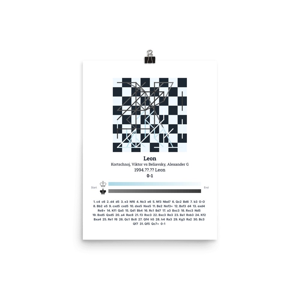 Museum-quality poster on thick, durable matte paper. A sharp, clean look for any chess visualisation.