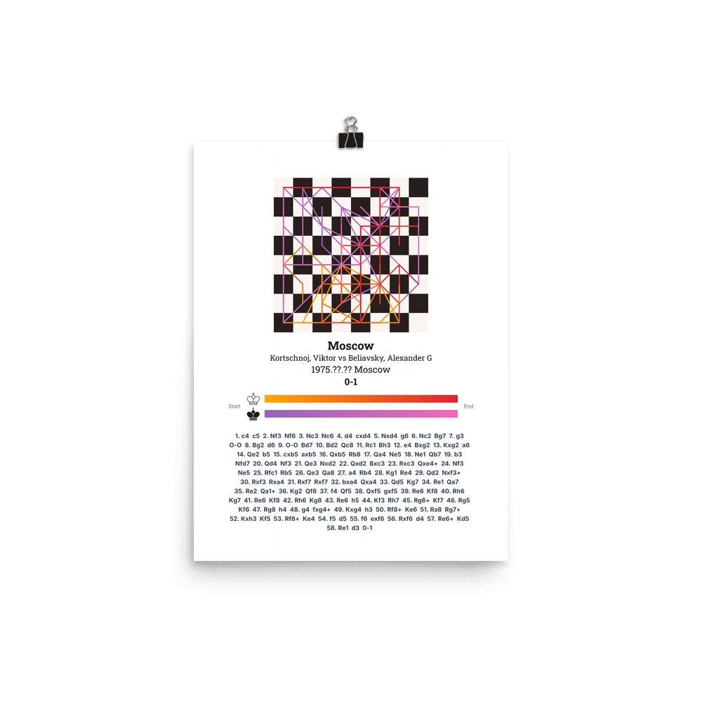 Museum-quality poster on thick, durable matte paper. A sharp, clean look for any chess visualisation.