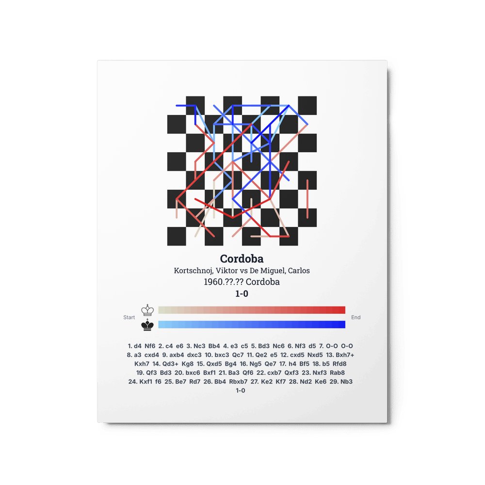 Museum-quality poster on thick, durable matte paper. A sharp, clean look for any chess visualisation.