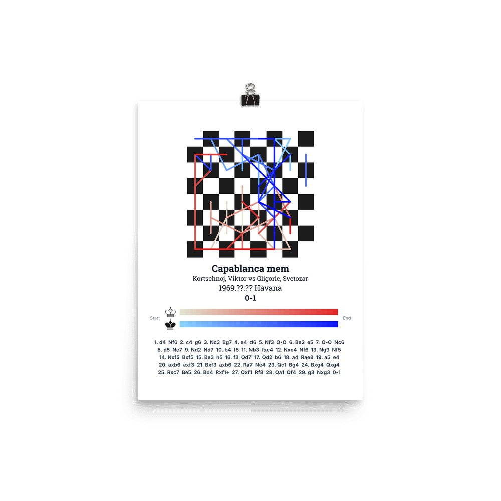 Museum-quality poster on thick, durable matte paper. A sharp, clean look for any chess visualisation.