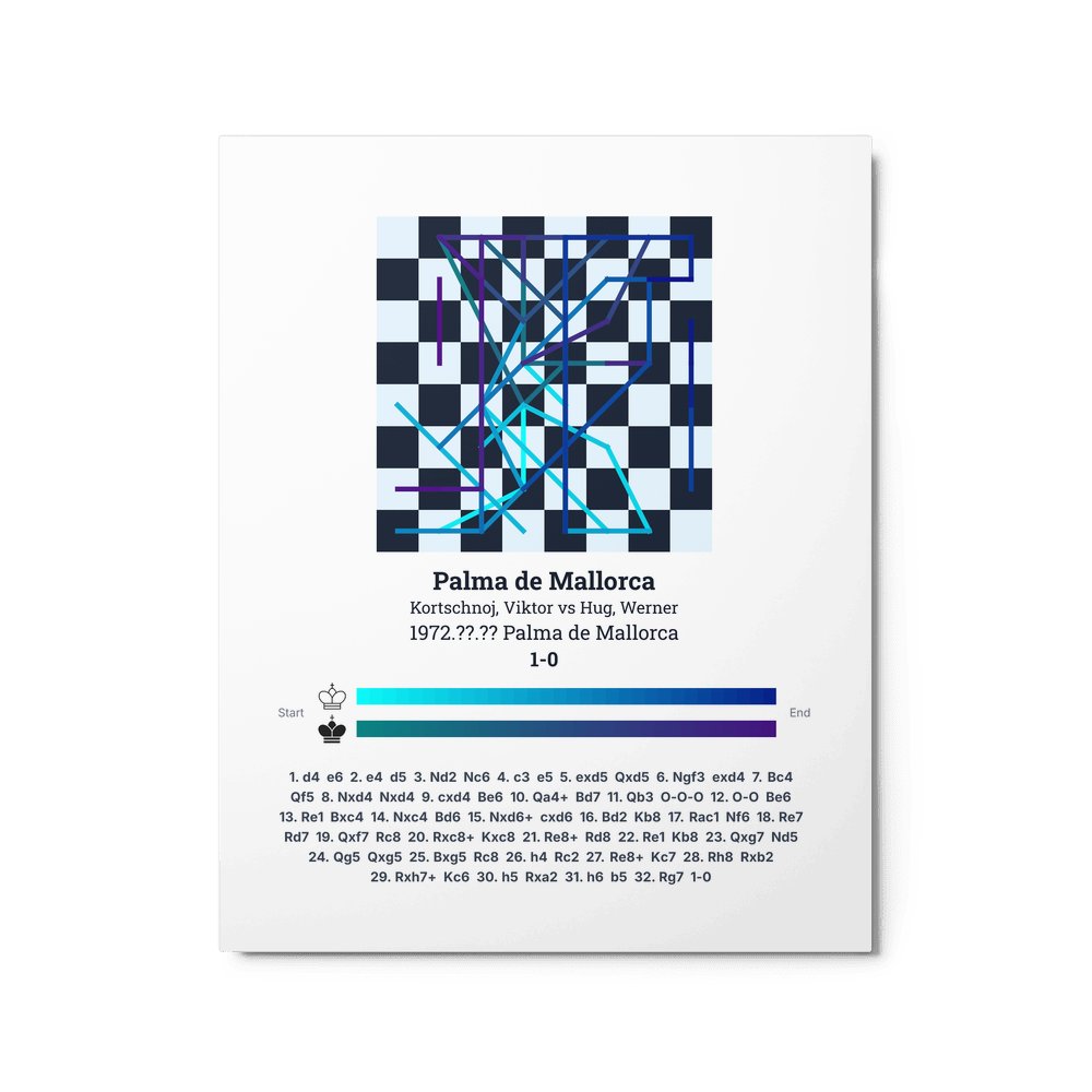 Museum-quality poster on thick, durable matte paper. A sharp, clean look for any chess visualisation.