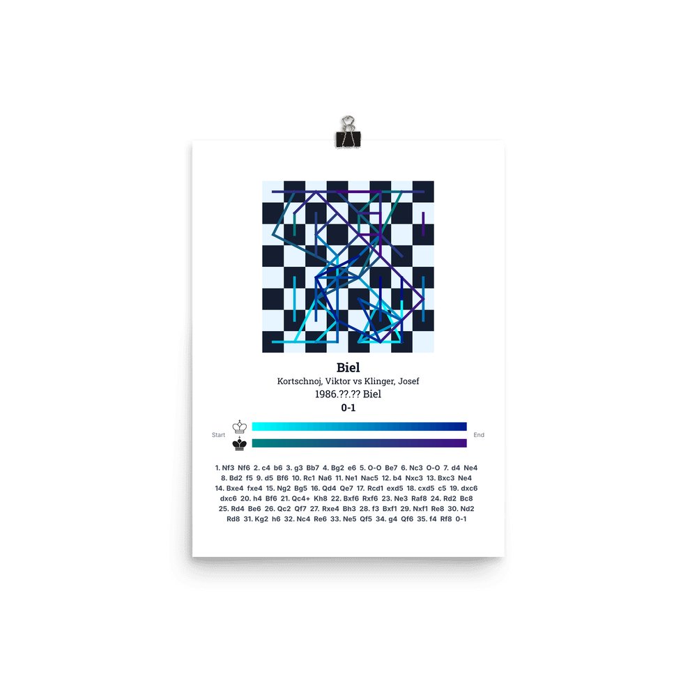 Museum-quality poster on thick, durable matte paper. A sharp, clean look for any chess visualisation.