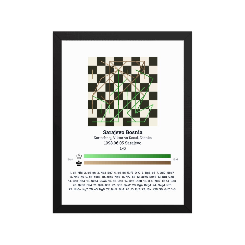 Museum-quality poster on thick, durable matte paper. A sharp, clean look for any chess visualisation.