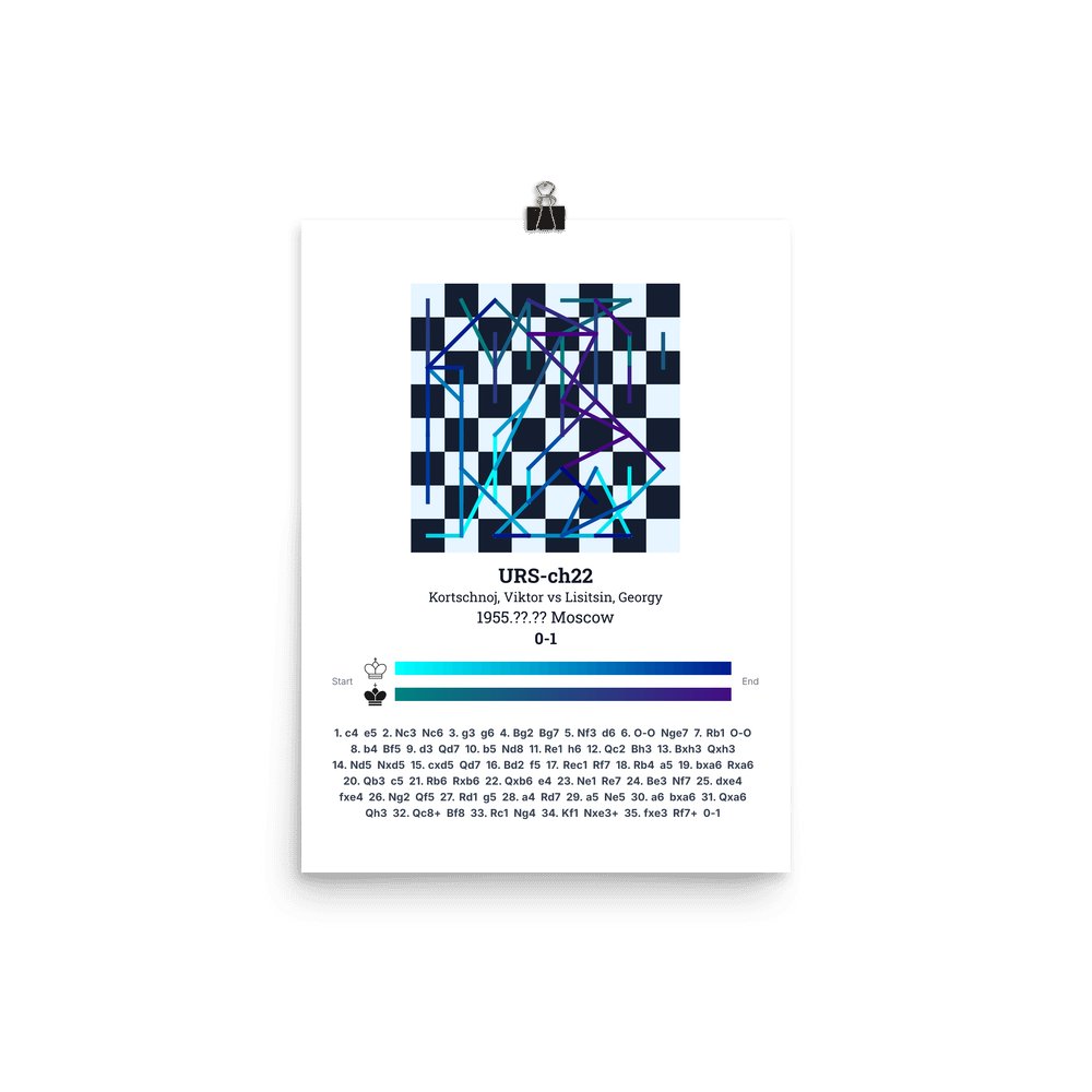 Museum-quality poster on thick, durable matte paper. A sharp, clean look for any chess visualisation.