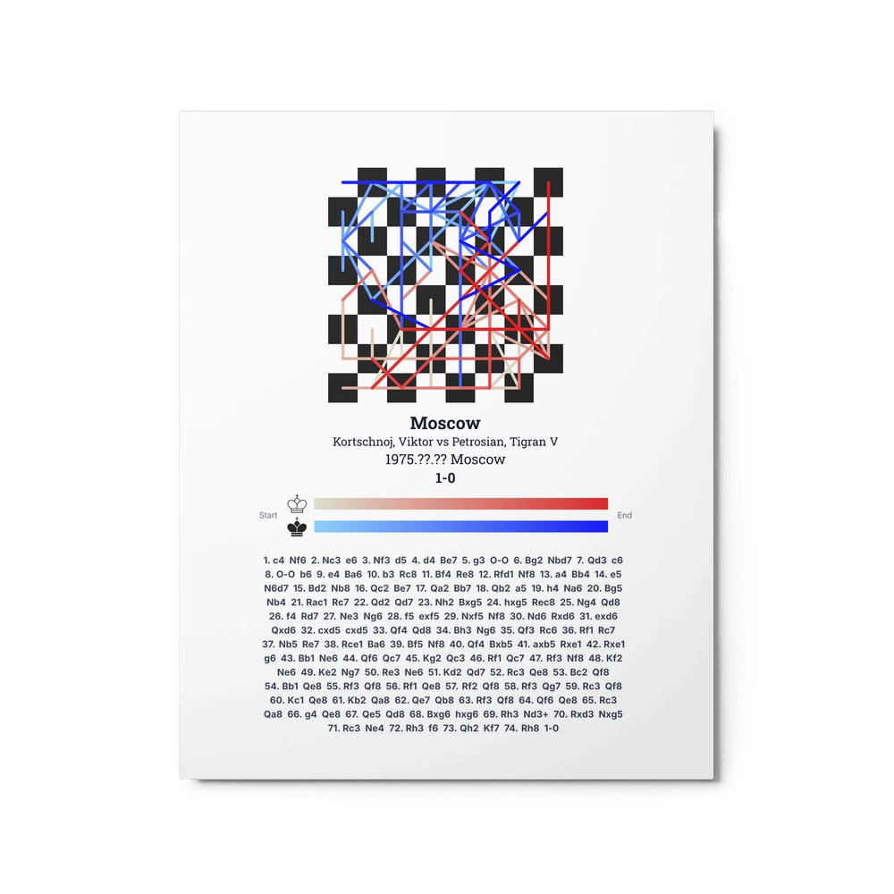 Museum-quality poster on thick, durable matte paper. A sharp, clean look for any chess visualisation.