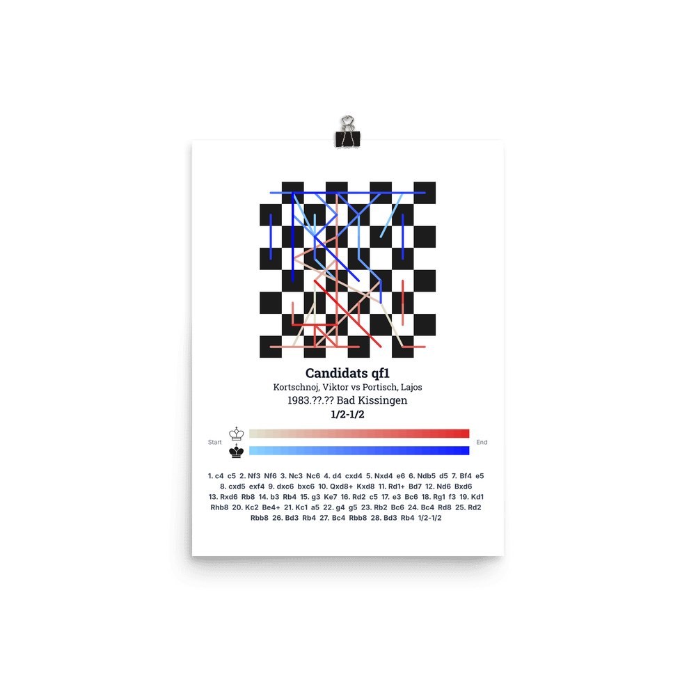 Museum-quality poster on thick, durable matte paper. A sharp, clean look for any chess visualisation.