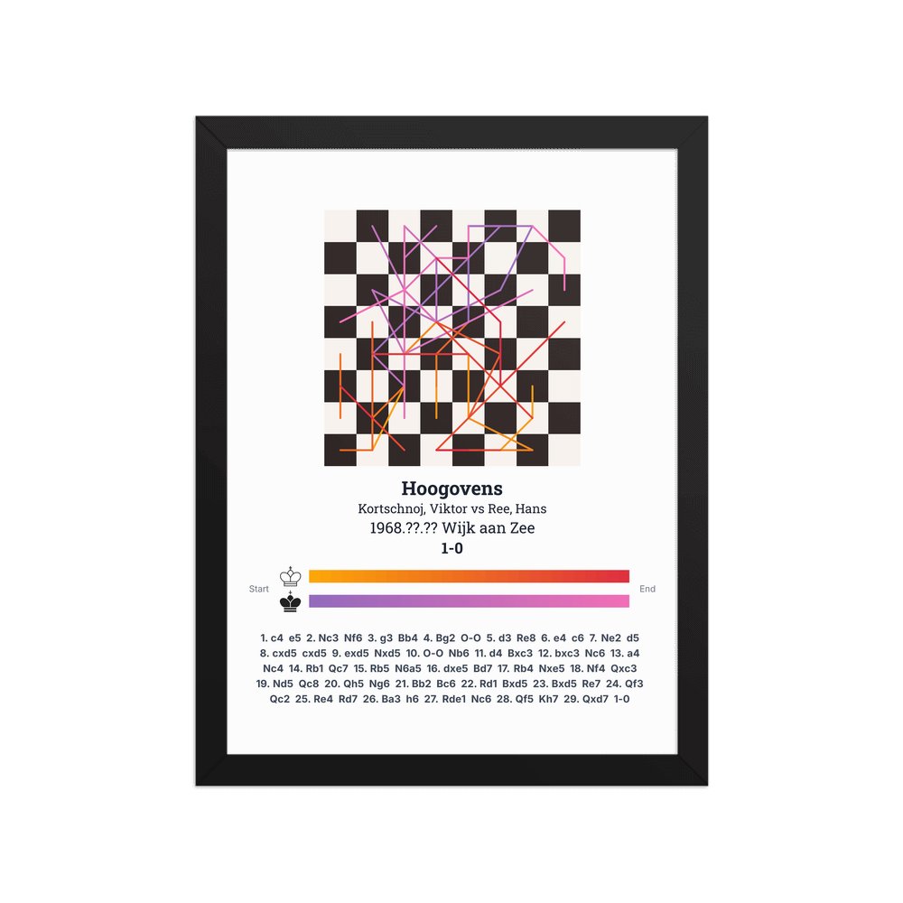 Museum-quality poster on thick, durable matte paper. A sharp, clean look for any chess visualisation.