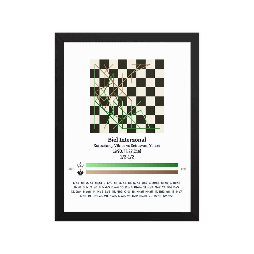 Museum-quality poster on thick, durable matte paper. A sharp, clean look for any chess visualisation.